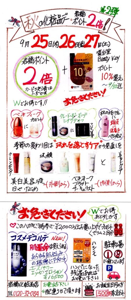 秋の化粧品デー・岩橋ポイント2倍デー第2弾